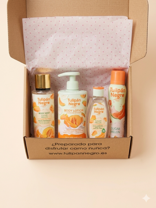 En su interior encontrarás el ritual completo de belleza con la irresistible fragancia Sugar Melon, fresca, dulce y perfecta para primavera: